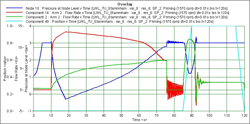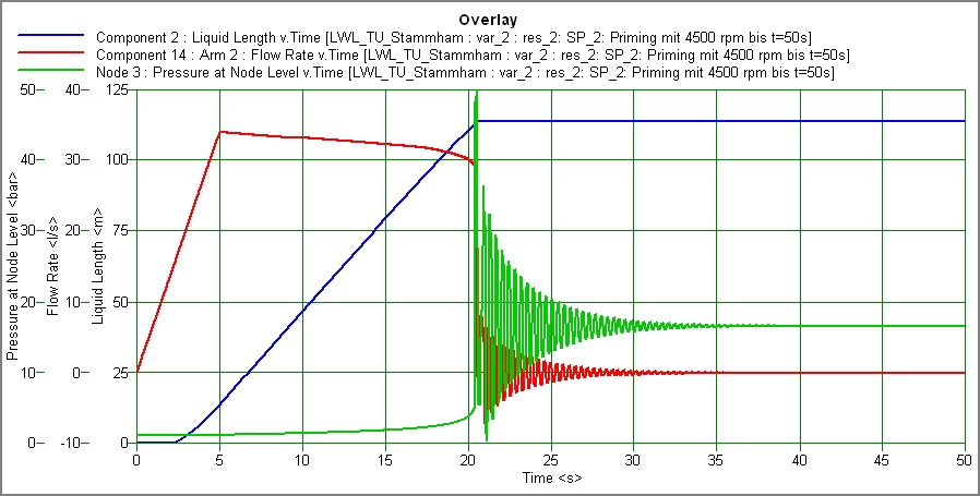 Abbildung 9: Primingvorgang einer Löschwasserleitung nach Vorgabe von Handlungsanweisungen, wodurch das System druckstoßsicher betrieben werden kann.
