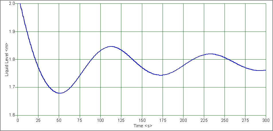 Abbildung 2: Oszillation des Wasserspiegels in einem ausreichend groß dimensionierten Windkessel (vgl. Netzschema Abbildung 1)