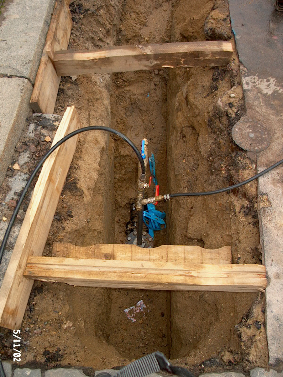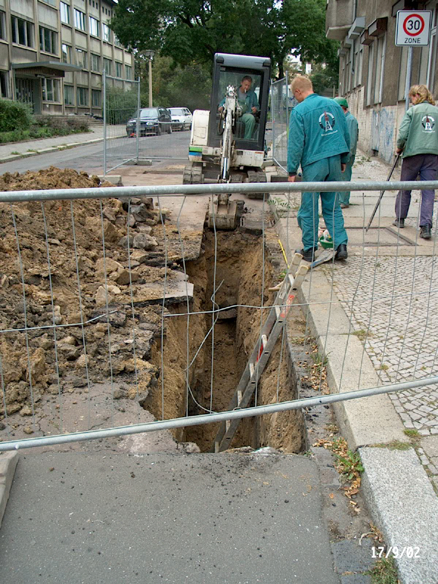 Planung und Bauleitung bei der Erneuerung einer vorhandenen Trinkwasserleitung durch PE-HD Material der Nennweite DN 150 mit Hausanschlüssen im innerstädtischen Bereich